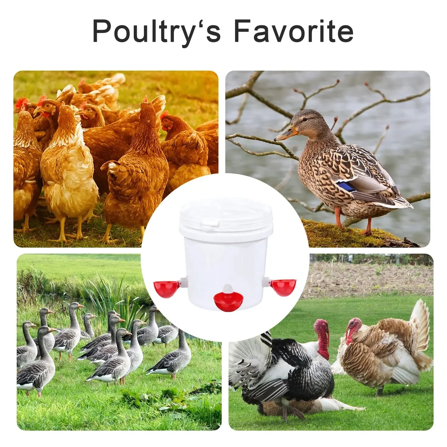 VERSATILE USE FOR DIFFERENT POULTRY TYPES: Suitable for chickens, ducks, quails, and turkeys, this waterer accommodates various poultry species effortlessly.