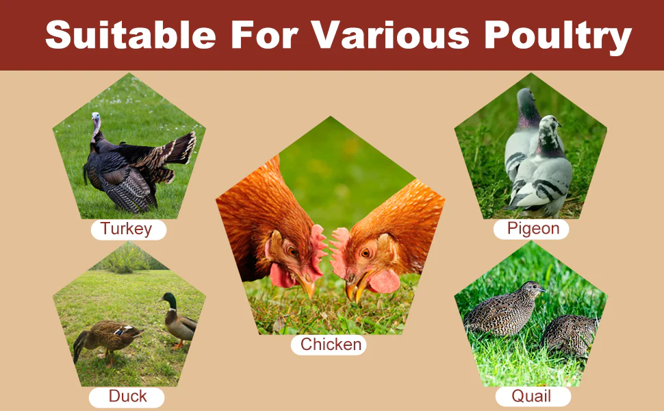 VERSATILE USE FOR DIFFERENT POULTRY TYPES: Suitable for chickens, ducks, quails, and turkeys, this waterer accommodates various poultry species effortlessly.